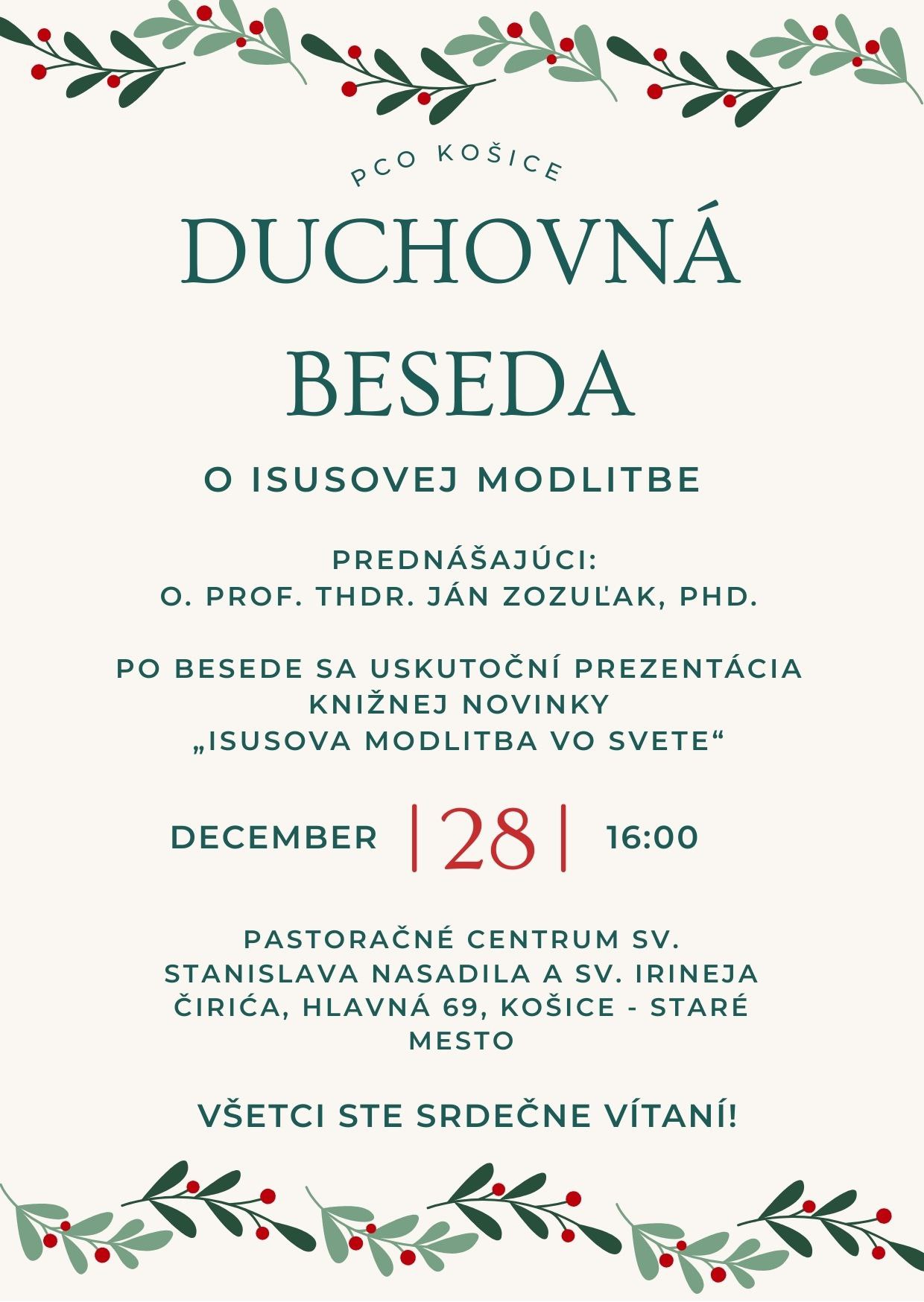 vás pozýva na duchovnú besedu